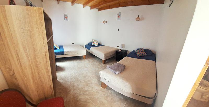 Habitación para 3 personas, con una decoración sencilla, ideal para matrimonio con hijos o un grupo de amigos. Cuenta con armario, baño privado con ducha. La Superficie de la habitación es de 20 metros cuadrados. Posee cama matrimonial y una cama de plaza y media.