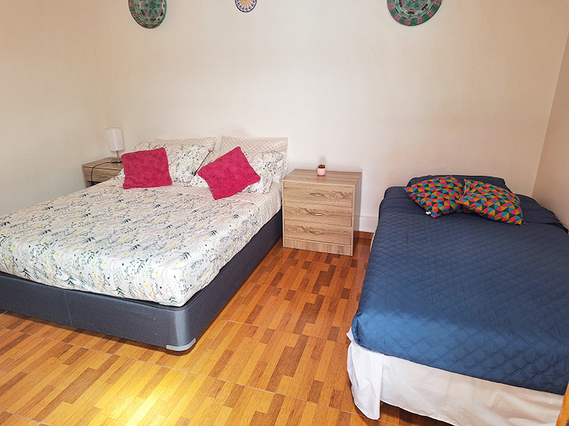 Habitación para 3 personas, con una decoración sencilla, ideal para un grupo de amigos. Cuenta con armario, baño privado con ducha. Superficie de la habitación 18 metros cuadrados. Posee 3 camas de plaza y media.