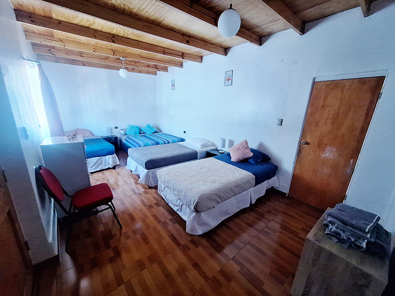 Habitación para 4 a 5 personas, con una decoración sencilla, ideal para matrimonio con hijos o un grupo de amigos. Cuenta con armario, baño privado con ducha, entrada independiente. La Superficie de la habitación es de 25 mts2. Posee cama matrimonial de 2 plazas y 3 camas de una plaza y media.
