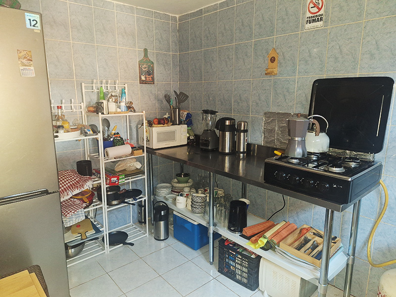 Ofrecemos una cocina equipada de uso compartido, contiene todo lo necesario. Hay disponibilidad de cafe y te gratuito de libre consumo, cortesia de nuestra hostal.